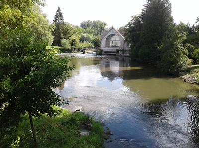 This photo refers to a battle which lasted over a month around August 1918 in WWI. Ten or so American soldiers crossed the river while being heavily fired upon by German soldiers. One guy sees his buddy struggling and being left behind the group. He cannot abandon his friend, so he re-crosses the river to retrieve his friend. A third American holding a gun provides cover fire while the 2 are crossing together. He snipes 7 enemy soldiers in only 7 minutes. The following day that third sniper guy finally succumbs to the gas attack which this group had been undergoing for the previous month. These Americans, appearing in one of the photos, were from Pennsylvania and that's why the State of Pennsylvania rebuilt this bridge. Thanks for this Patrick!
